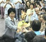 大臣就任のご挨拶9月1日、静岡市・札の辻での街頭演説から 静岡の皆さん、こんにちは。 私はこのたび安倍内閣改造人事で、 思いがけず内閣府特命担当大臣を拝命しました。 長年私を支え、育てていただいた地元・静岡市民の皆さんのお陰と、 心から感謝申し上げます。 振り返ってみますと、政治への志一つで、ふるさと静岡に戻り、 活動を始めて 2000年に初当選するまで7年半。 さらに初当選から三期目の今日まで7年。 スタートの時から数えれば14年目で、大臣に就任することができました。 あの初当選のときの喜びと感動が再びよみがえってきます。 しかし大臣就任という重い扉を開いてみると、 そこに広がっていたのは、これまで私が経験したことのない世界でした。 閣議に出席し、閣議決定事項に筆と墨で署名する時、 総理大臣以下、18名の閣僚の1人として、 日本の舵取りに共同で最終責任を負っているという重い実感が沸いてきます。 私が大臣に就任したことは、一般にはサプライズだったようです。 「上川って誰?」、「無名の上川陽子」という受け止め方がされたようです。 確かに、これまで14年間の私の政治活動は、 地道で、目立たないものだったかもしれません。 テレビやマスコミで活躍する政治家も少なくない中で、 支援者の皆さんには、 さぞ、歯がゆい、じれったい思いをさせてきたことでしょう。 しかし私が目指してきたのは、世間受けを狙ったパフォーマンスではなく、 社会の片隅で、人知れず苦しみや悩みを抱えている人たちのそばに寄り添い、 彼等の苦しみや悩みを少しでも和らげてあげる、そういう政治のあり方でした。 その「無名の上川陽子」が、安倍総理の目に留まったというわけです。 総理からは、 自民党女性局長として全国の女性党員の皆さんと一緒になって、 少子化問題に取り組んできた、私のこれまでの実績を踏まえ、 ぜひ担当大臣としてこの問題に取り組んでほしいとのことでした。 あわせて男女共同参画、青少年健全育成、食育についても一任されました。 これらはいずれも、これまで私がキーワードとして掲げてきた 「21世紀は生命 (いのち)の時代」 というテーマに直接かかわる大切な分野です。 次世代を担う子供たちが「豊かさ」とともに、「しあわせ感」も実感できるように、 男性と女性がともに力を合わせ、はつらつと国づくりに参加できるように、 力強く応援するという重要な仕事です。 たしかに今、日本が直面している少子化の現状には大変厳しいものがあります。 しかし、私はけっして悲観はしていません。 なぜなら、多くの女性が子供を欲しい、子供を産みたいと思っているからです。 しかし彼女たちの多くが、産むことにためらいを感じている。 産むことを諦めている。 あるいは、産むことを諦めざるを得ない状況におかれている。 ですから、少子化担当大臣としての私の仕事は、はっきりしています。 つまり、子供を産むことを希望する女性たちが、 何らためらうことなく、安心して産める社会の仕組みを整えてあげる、 それが私の仕事です。 社会の仕組みを整えることは現実問題として大変です。 大きな壁があることも確かです。 しかし、政治の使命が国民の「しあわせ」を実現することにあるとすれば、 少子化問題は、まぎれもなく日本の大きな政治課題です。 子供たちの心と体の健康な発達と成長を見守り、 それを応援するための施策づくりに知恵を絞り、 子供たちの目の中にあるキラキラした輝きを思い浮かべながら、 子供と家族を支える社会の仕組みを充実させていくこと。 このことに私は、全身全霊をこめて取り組みます。 先般の参議院選挙で自民党が敗北したのも、 国民に対する謙虚さや細やかな心配りが足りなかったからだと思います。 政治への信頼を取り戻すには、できるだけ多くの人たちと直接会って、 謙虚に耳を傾け、地道に活動し続けることが大切です。 私はこれまでと変わらず、皆さんと同じ視点に立ち、役所に閉じこもることなく、 外部の関係する機関や企業、地域社会で活躍する団体・グループ、 さらには海外の関係する諸団体の皆さんとのコミュニケーションを大切にし、 皆さんの期待に応えられるようがんばってまいります。 これからは地元に戻る機会が以前に比べ少なくなるかもしれませんが、 できる限り皆さんとふれあい、対話を重ねてまいりたいと思います。 引き続きのご支援をよろしく指願い申し上げます。 ありがとうございました。