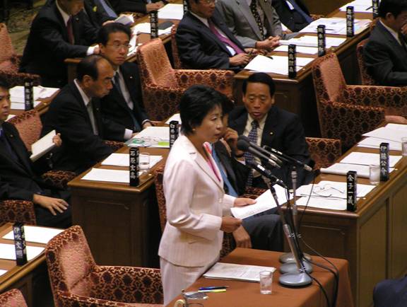 ―― 先の衆議院選挙結果で明らかとなった国民の「改革」への期待にどう応えるか、という問題意識から、財政再建への取り組み、「改革」のコントロールタワーである経済財政諮問会議の位置づけ、年金制度のあり方、少子化対策などをテーマとし、谷垣財務大臣、尾辻厚生労働大臣、竹中大臣(経済財政諮問会議担当)、南野大臣(少子化担当)、村上大臣(行政改革担当)に答弁をお願いしました。