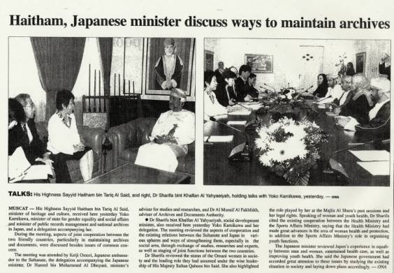 1.私は、5月2日から6日にかけて、オマーン及びアラブ首長国連邦(UAE)を訪問しました。 2.オマーンでは、ハイサム遺産文化大臣との会談においては、両国の公文書管理に関する幅広い意見交換を行うとともに、デジタルアーカイブ等の先端技術を学ばせるため同国の専門家を我が国に派遣することを検討するなど、今後、両国が一層緊密に協力していくことを合意しました。また、「留学生30万人計画」に関して同国からの留学生の増加を要請し、同大臣から前向きな回答がありました。 3.また、シャリーファ社会開発大臣との会談では、男女共同参画に関する共同調査研究の実施等について、スナイディー・スポーツ大臣との会談では、青年交流に関する一層の協力等について、それぞれ合意しました。さらに、モナ・マンゼリ氏をはじめとする国家評議会の女性議員の方々と、オマーンのみならず中東地域における女性の社会参加、特に政治分野における活躍について幅広い意見交換を行いました。 4.また、UAEでは、日本人学校を訪問し、現地において子育てをしている日本人女性の方々と懇談し、急激に在留邦人が増加しているドバイならではの教育インフラの不足の問題について意見交換を行いました。 5.私としましては、今回のオマーン及びUAE訪問の結果を具体的な成果につなげるよう、関係機関とも連携しつつ、取り組んでまいります。