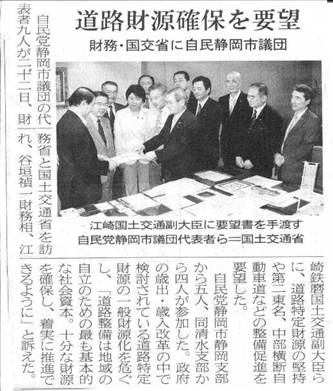 本日、静岡市議団代表者の皆さん9名と財務省・国土交通省を訪れ、第二東名や中部横断自動車道などの整備促進を要望しました。財務省では谷垣大臣、福田主税局長、国土交通省では江崎副大臣・佐藤事務次官・谷口道路局長にそれぞれお会いし、詳しく説明を聞いていただきました。