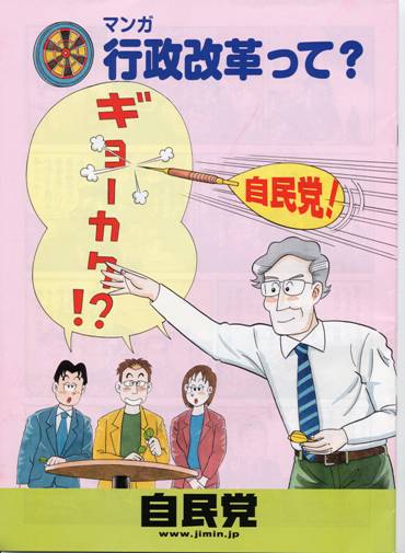 自民党行革推進本部(衛藤征四郎本部長)が行政改革の進捗状況とその必要性を漫画で解説したパンフレット『マンガ 行政改革って?』(