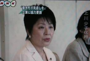 上川少子化担当大臣は、少子化に歯止めをかけるには仕事と家庭生活や子育ての両立、いわゆる「ワーク・ライフ・バランス」の実現が必要だとして、大手企業の経営者らに会い、働き方の見直しなどに、協力を要請しました。