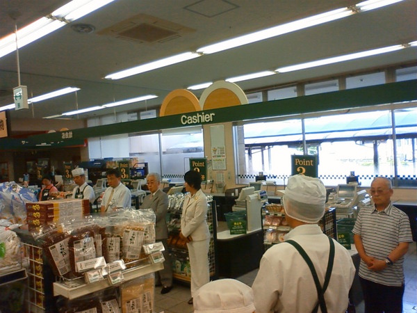 市内スーパーで朝礼に出させていただきました。